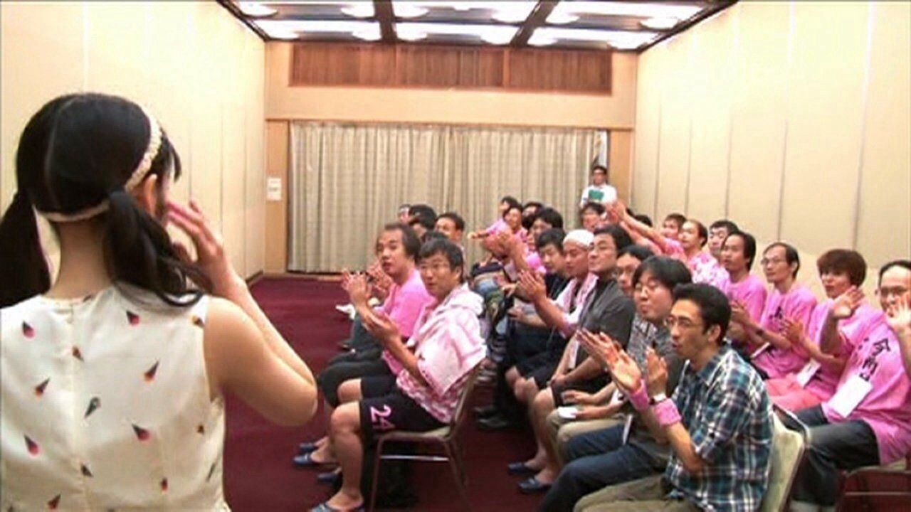 道重さゆみさんが楽しそうに歌っている、元気いっぱいのライブ会場。亡くなったファンの霊魂が会場を訪れ、