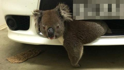 帰宅後車の傷を確認すると変な鳴き声がしたため、探してみると、車に挟まってコアラが鳴いていたそうです。