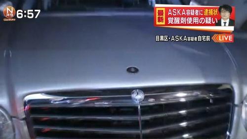 18時半頃に逮捕状が出され、18時53分に車にASKA容疑者が車の後部座席に乗り込みガレージから出ようとしたときにマスコミがASKA容疑者の写真を撮ろうととんでもない騒動になった。
