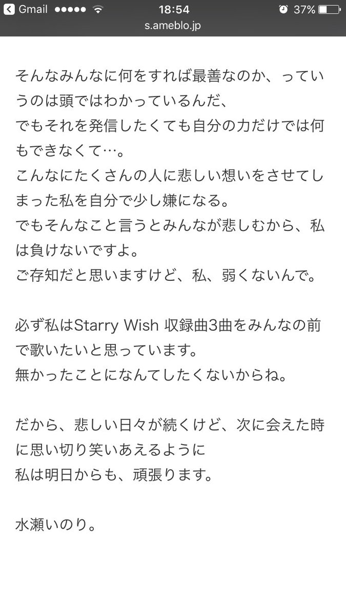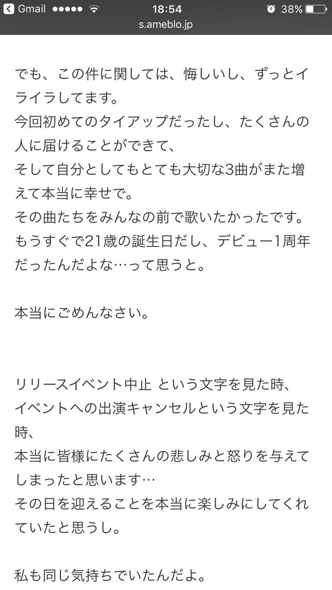 水瀬さんは発表で「ファンの皆さんに会いに行くことができなくなり、とても悲しく残念な気持ちです。本当に申し訳ありません。