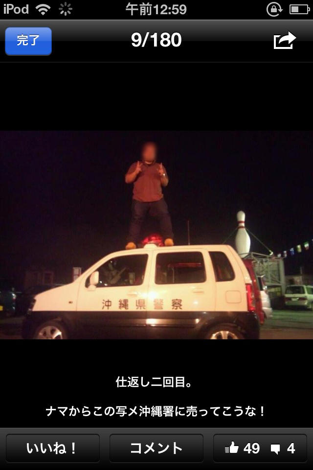 パトカーの上に乗るのって犯罪じゃないのかよ・・・