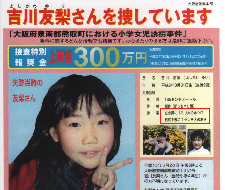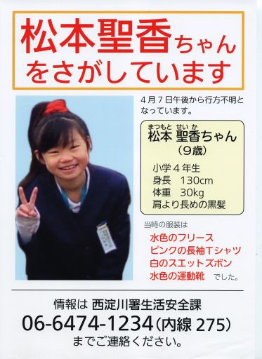 高松市浜ノ町、会社員大西正芳さん(48)の二女有紀ちゃん(5つ)が行方不明になった。