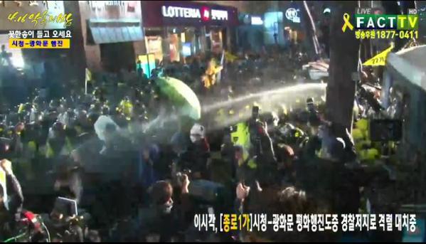 事故遺族ら機動隊と衝突 ソウル中心部