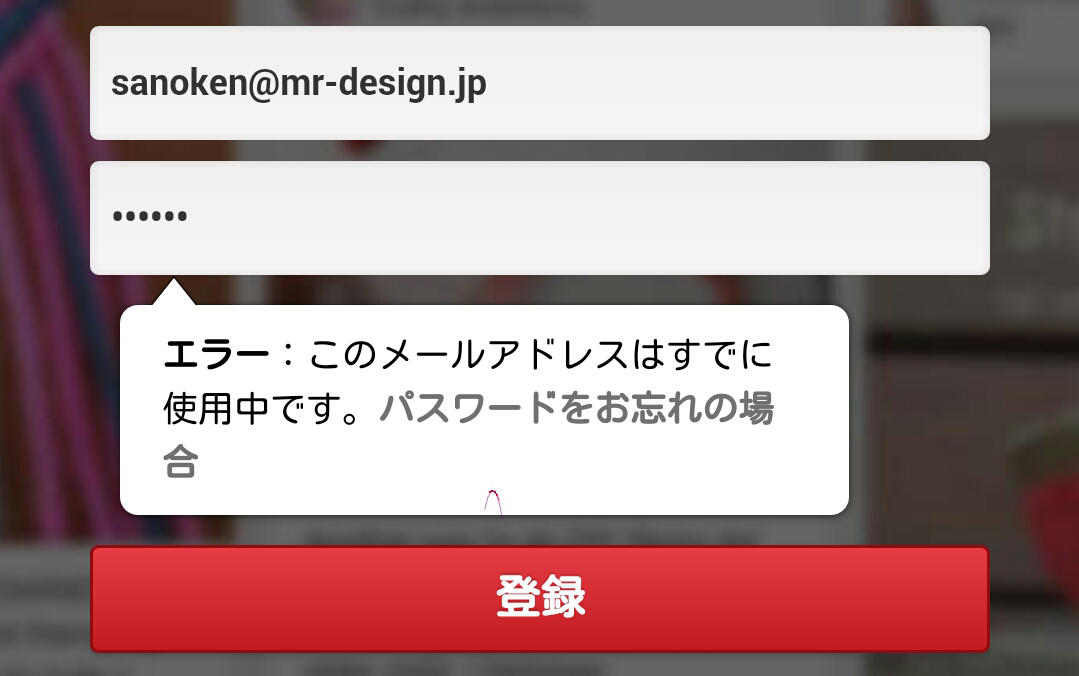 しかし、Pinterestで佐野氏のメールアドレスを入力すると「すでに使用中です」と表示された。