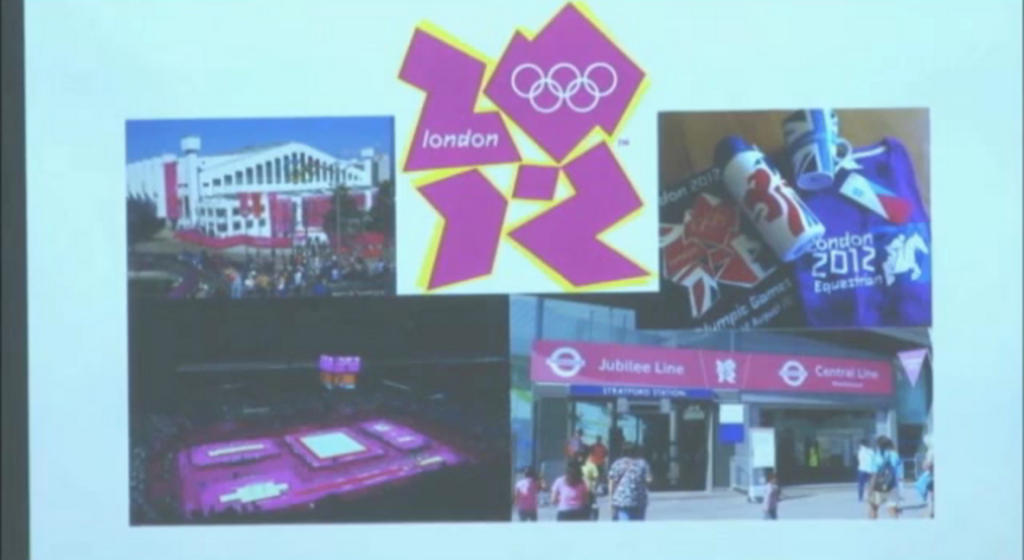 会見ではロンドン五輪でのエンブレム展開例とリオ五輪の使用イメージ図、各4点の計8点の写真が使用されていた。