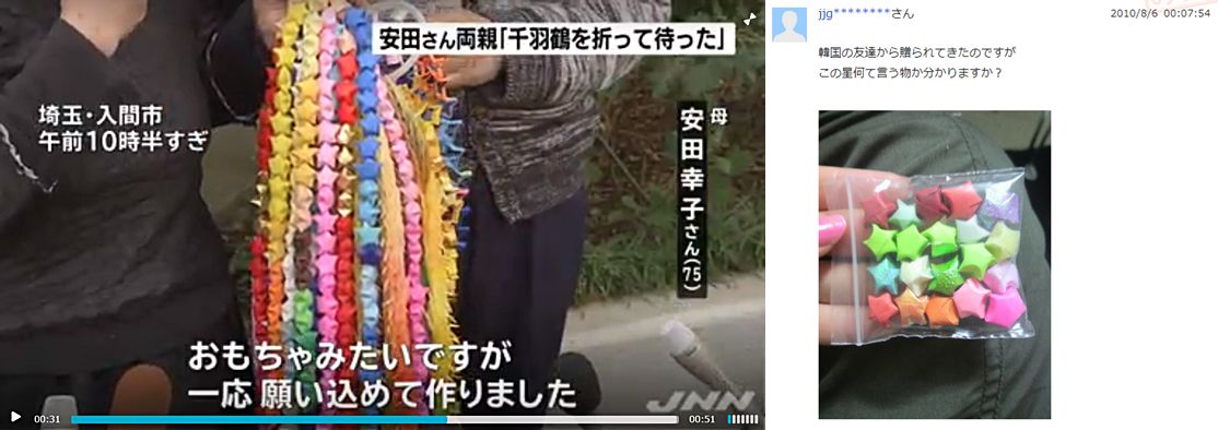 千羽鶴と言ってなんでか星型で作っちゃう韓国人