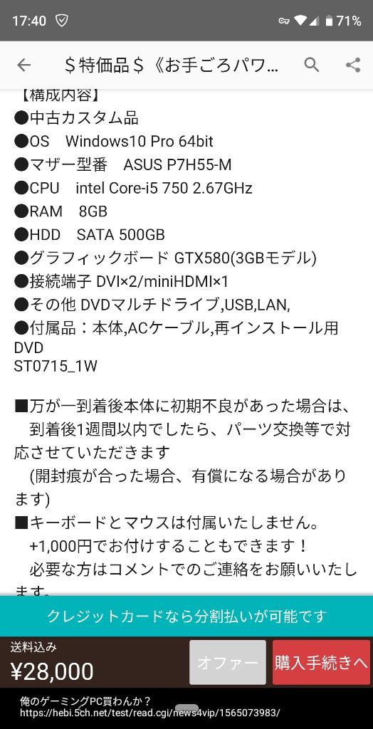 結構なハイスペックだと思うよゲーム動作も問題ないし