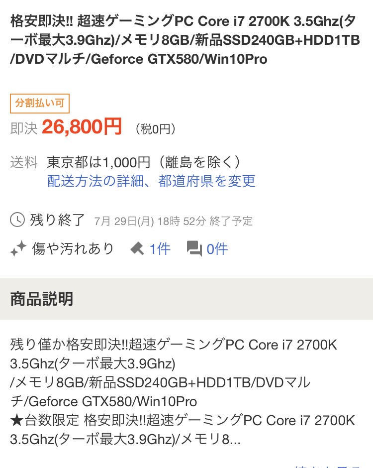 つーか、メモリ8しかないしGTXも580しかないんじゃあ10万も中古の買う奴いないよ
