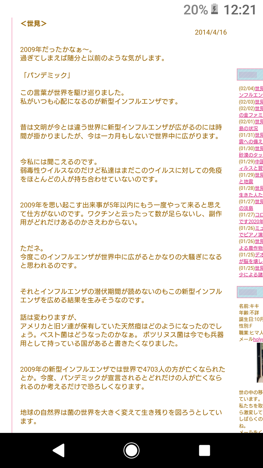私は日本で最初の感染者が確認された1月16日、たまたま上海出身の友人と食事していた。「新型肺炎心配だね」と話しかけると、彼女は「でも武漢の話だから」と興味なさそうだった。その友人だけでなく1月中旬に会った中国人は皆、「武漢の話だから」と他人事だったが(中国は広いのだ!)、それは今や世界中の話になってしまった。