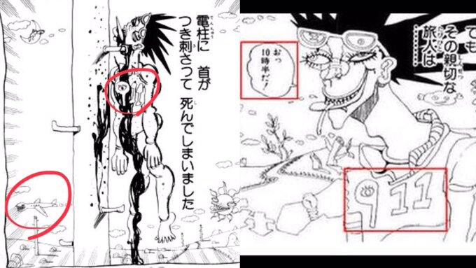 それが9.11の11年前に描かれたという話、9.11を暗示していると言われたものはストーリーには全く関係しておらず、作者の荒木先生も何故書いたかわからないと言っている