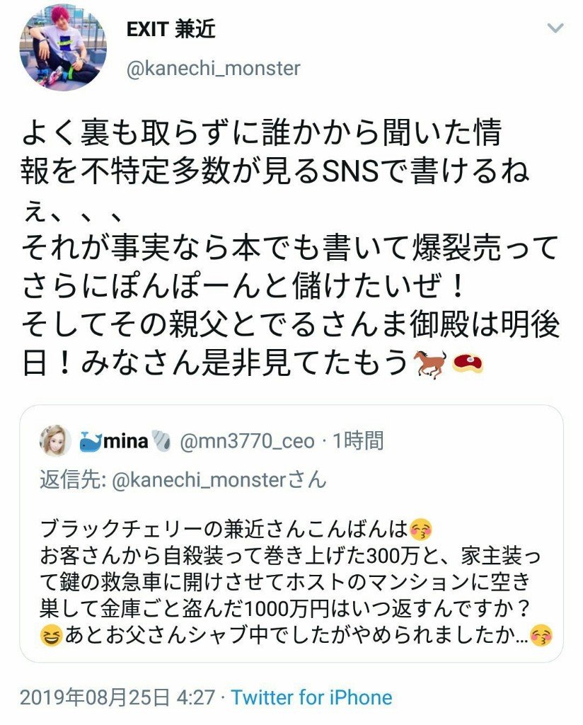 - 【速報】兼近に被害にあったという女性がTwitterで色々暴露