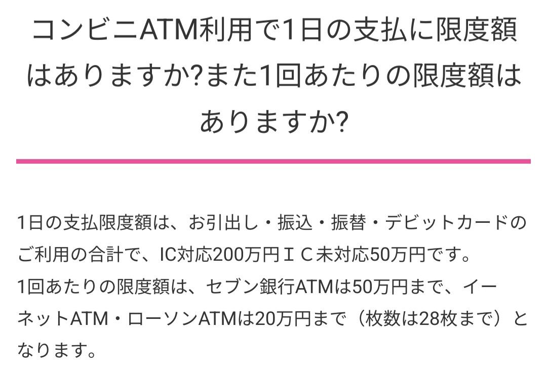 セブン銀行だけ50万おろせるよ