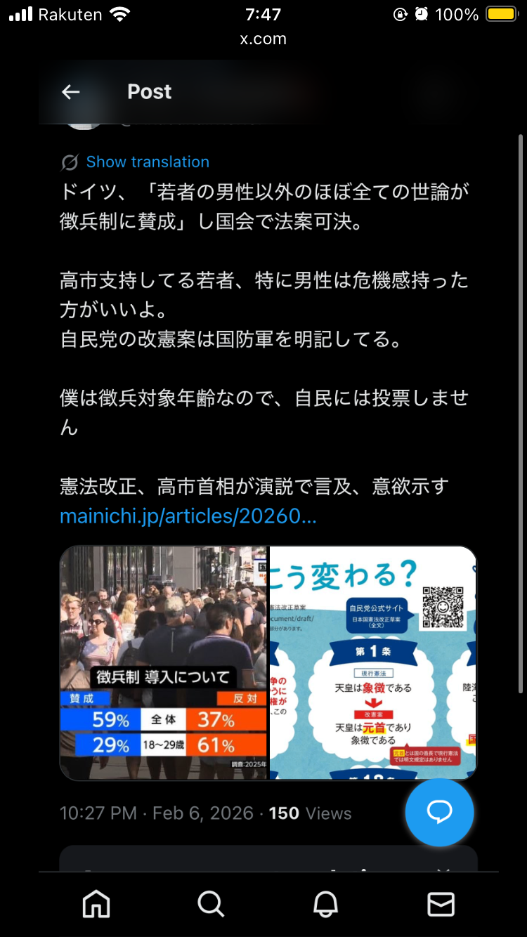 僕は徴兵対象年齢なので、自民には投票しません