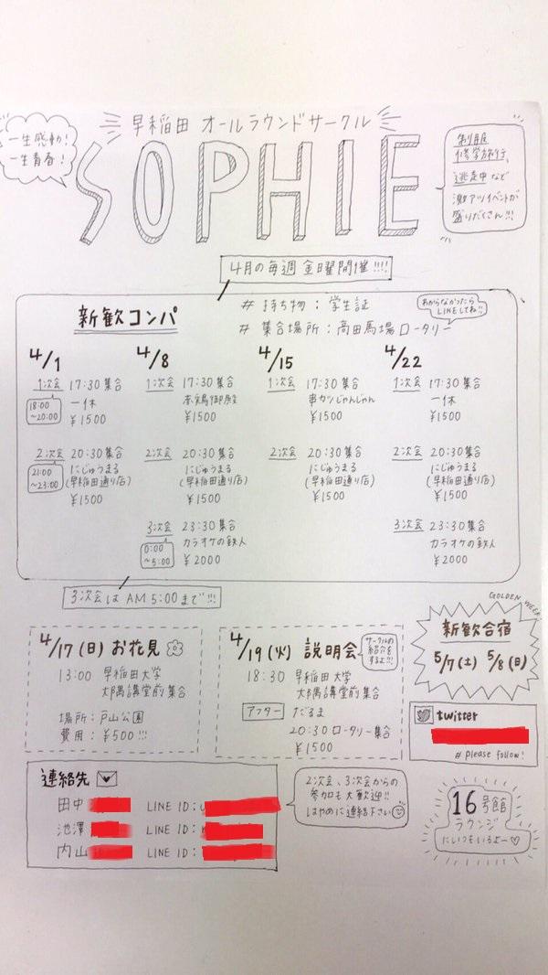 サークル公式アカウントのキャッシュページから、サークルが1日に高田馬場で新歓コンパを予定していたことも分かった。