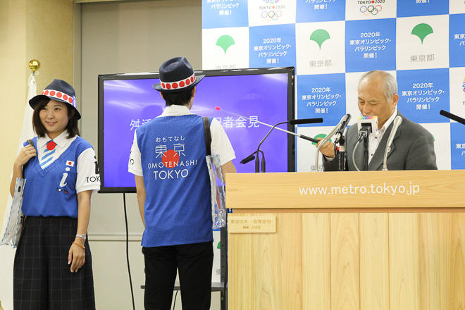 今日東京都庁で行われた「舛添知事 定例記者会見」で「おもてなし東京」というロゴが入ったメンズ、ウィメンズの2種類を初披露。