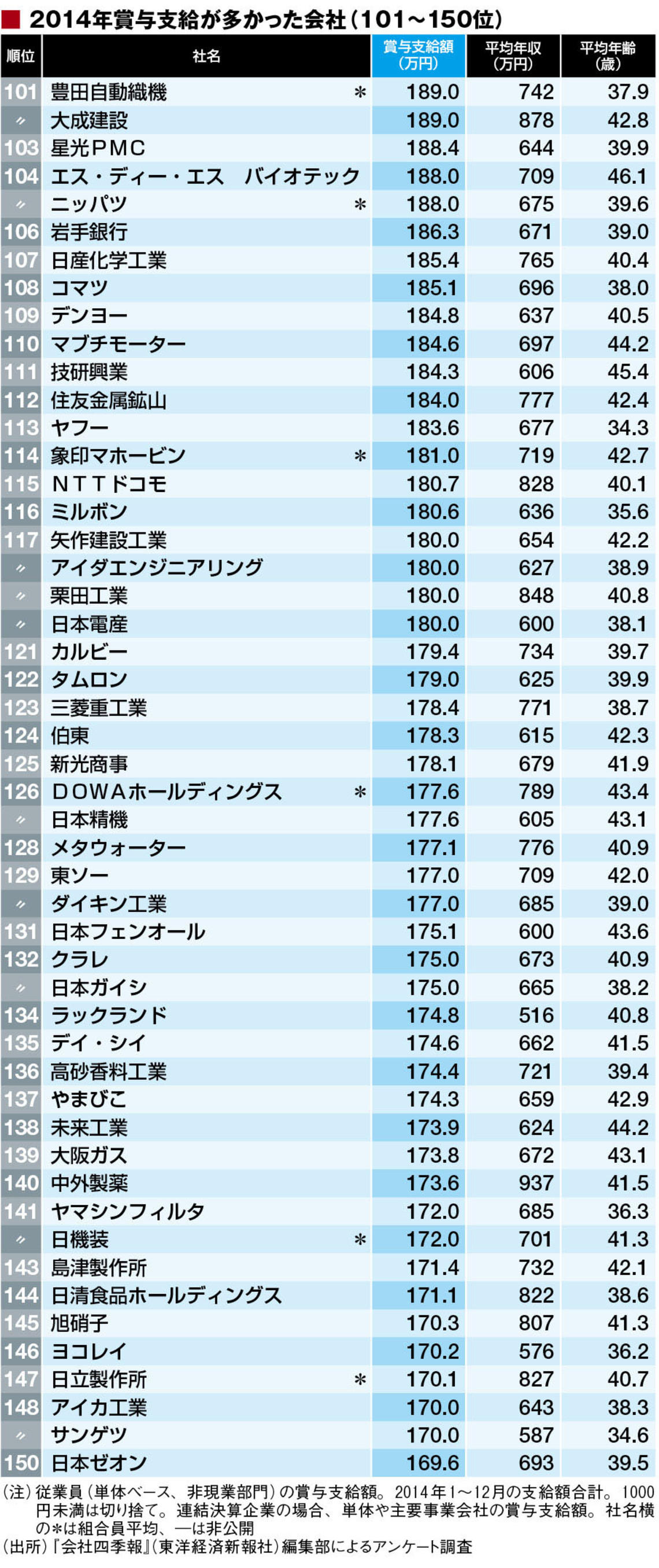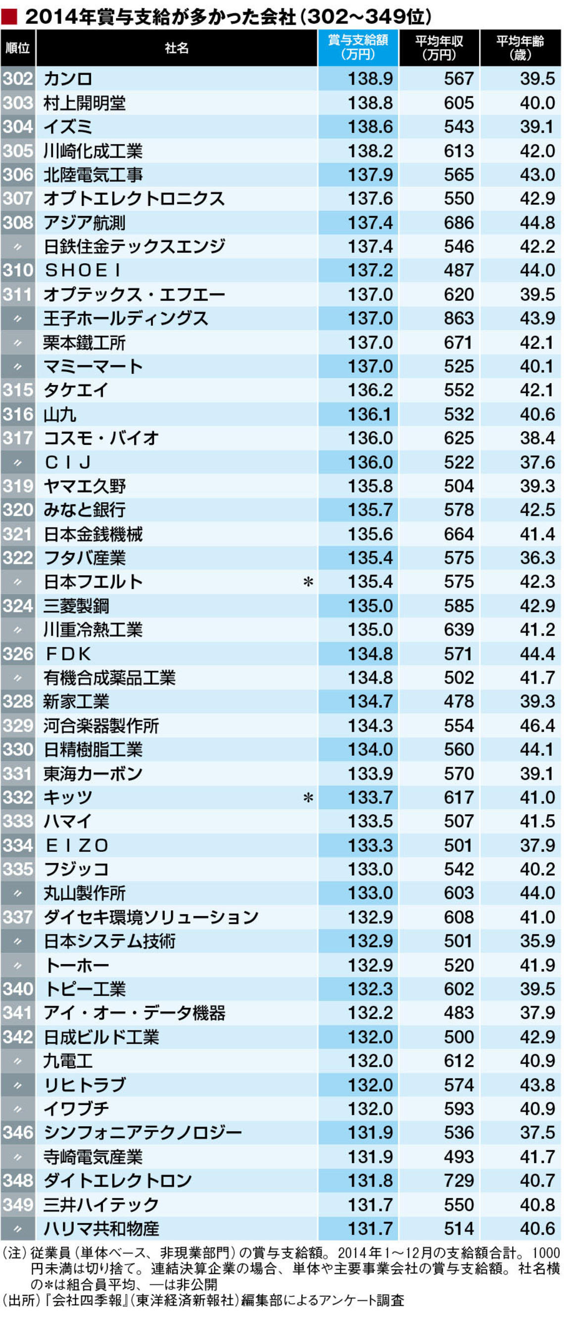 では、実際にどんな企業で、どれぐらいの賞与が払われているのだろうか。東洋経済オンラインは、 『会社四季報』(東洋経済新報社)編集部と協力して、「2014年に賞与支給額が多かった」企業を調べその上位500社をランキングした。