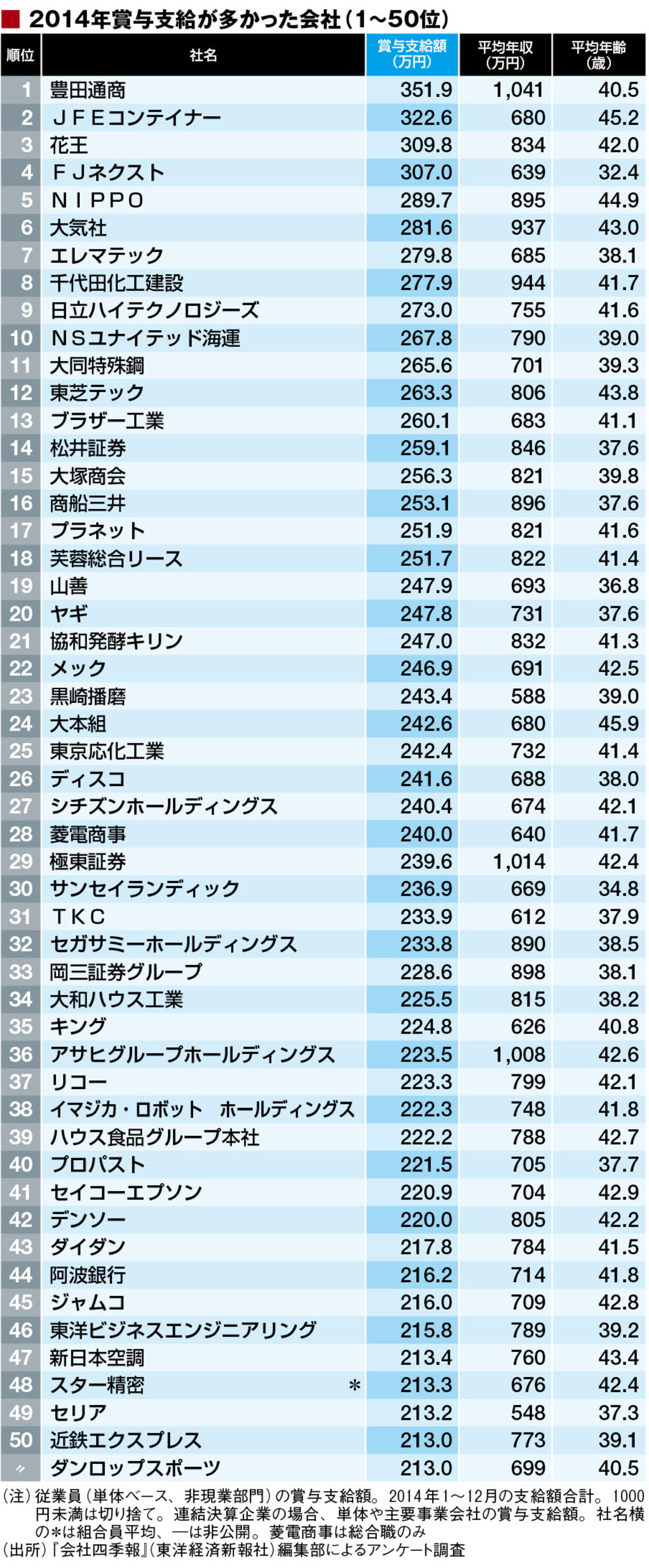 公開!これが「賞与が多い」トップ500社だ 上場企業の2014年実績を独自調査