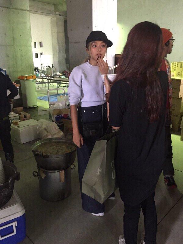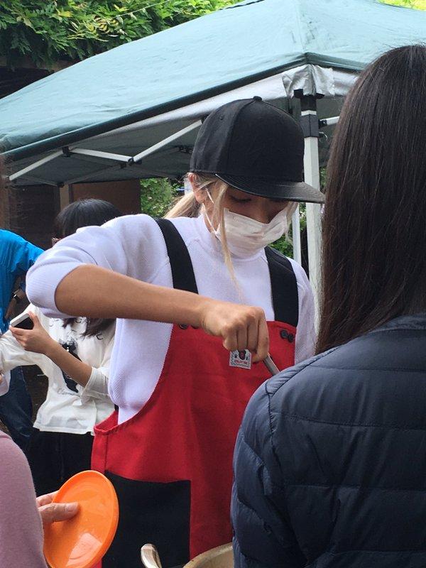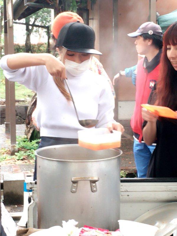 女優の佐々木希さん(28)が4月28日、熊本県の益城町総合体育館で炊き出しに参加した。